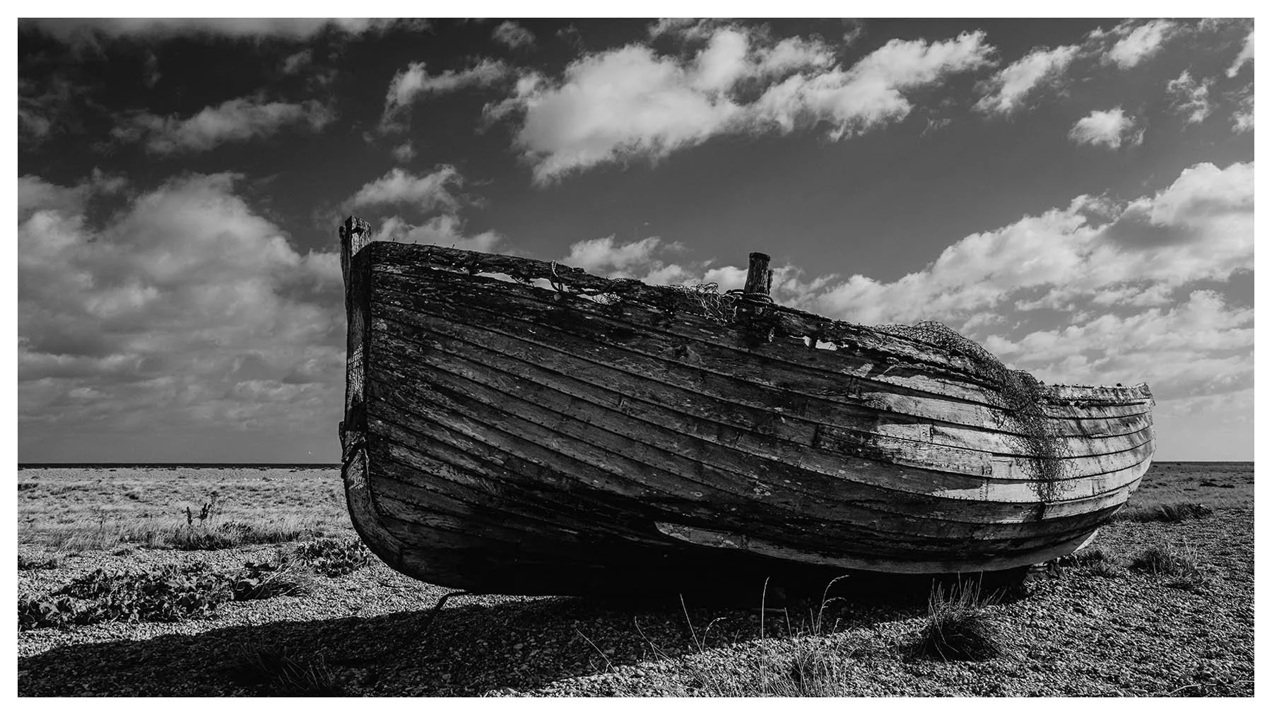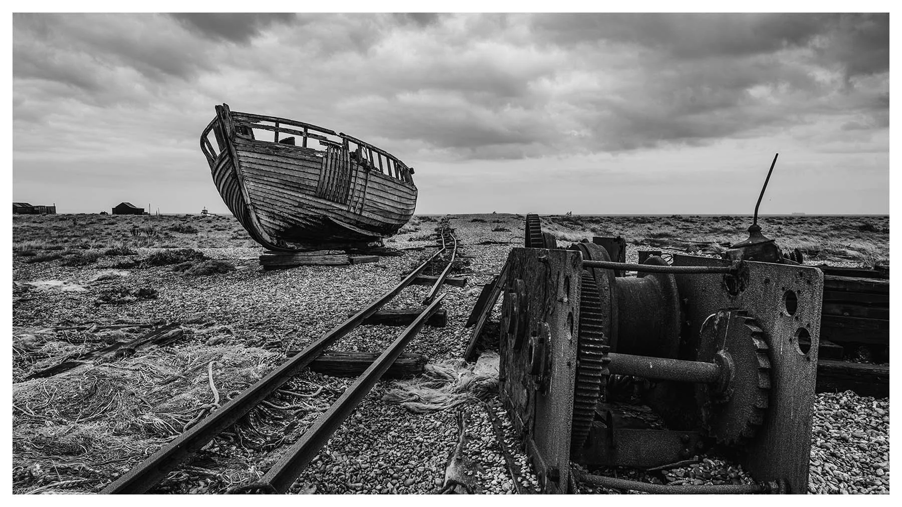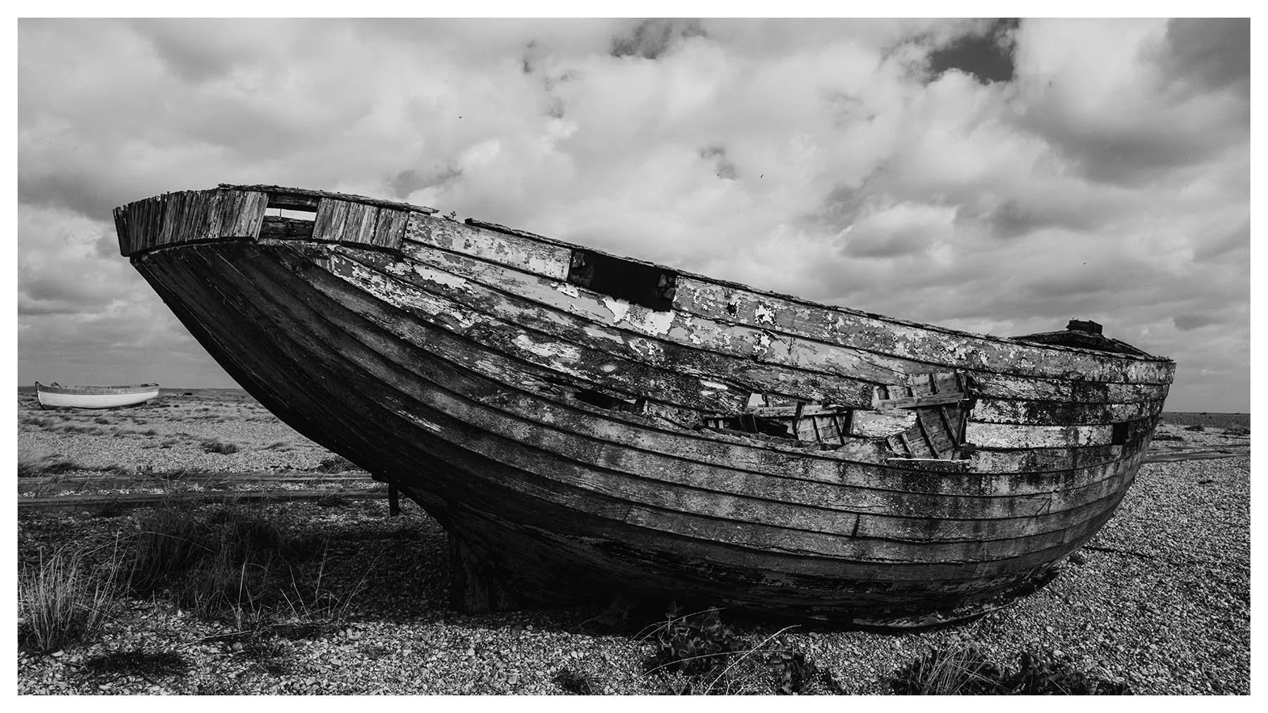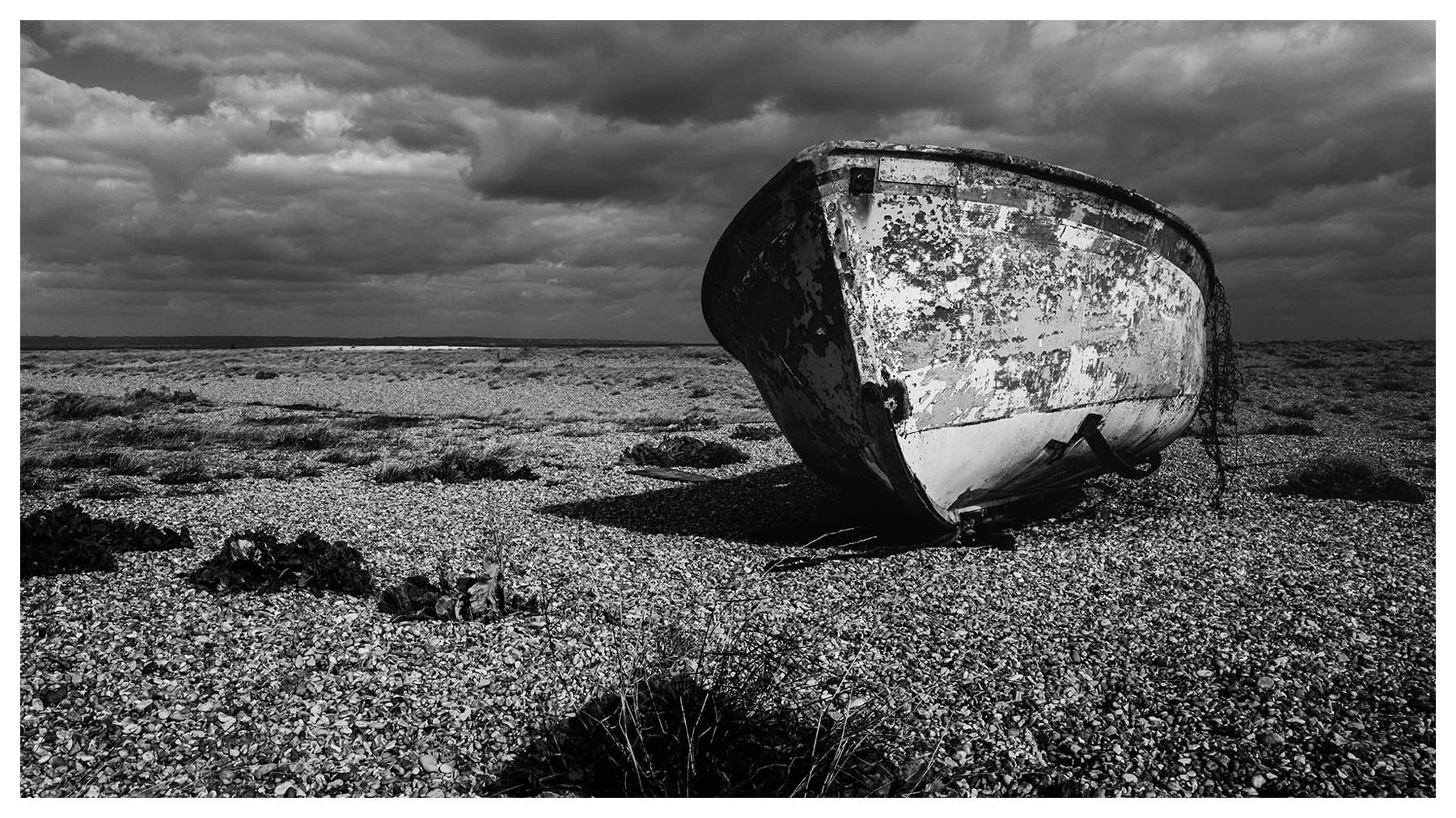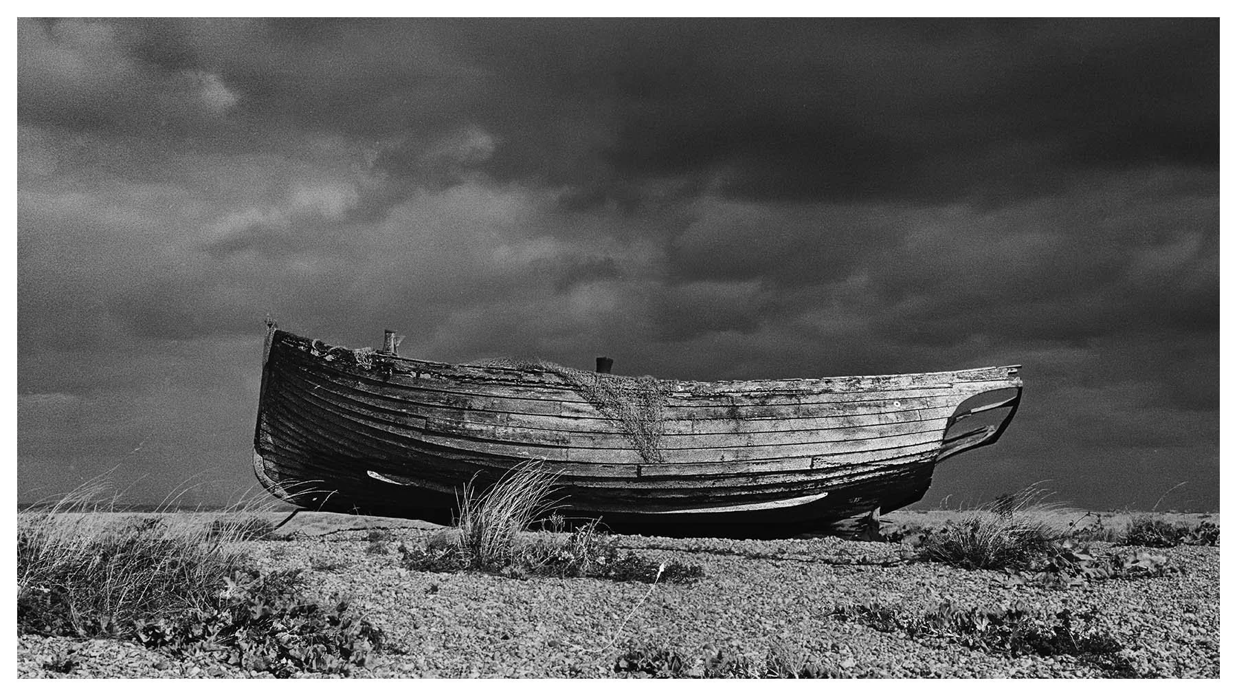 Dungeness Beach is a place where the landscape feels suspended between beauty and desolation. It’s a vast shingle expanse, scattered with abandoned boats, weather-beaten huts, and rusted machinery. The flat horizon and the haunting stillness, has a melancholy about it, every texture rich with history. I wanted to document the boats before they vanish forever.