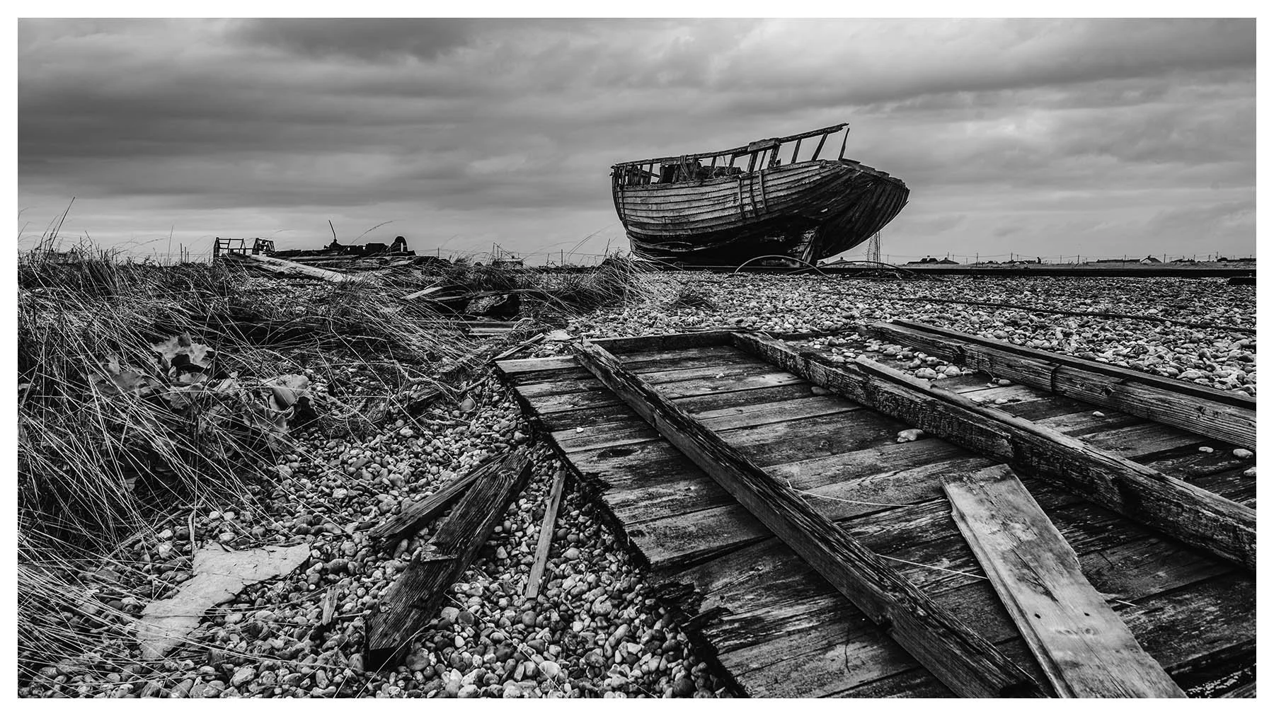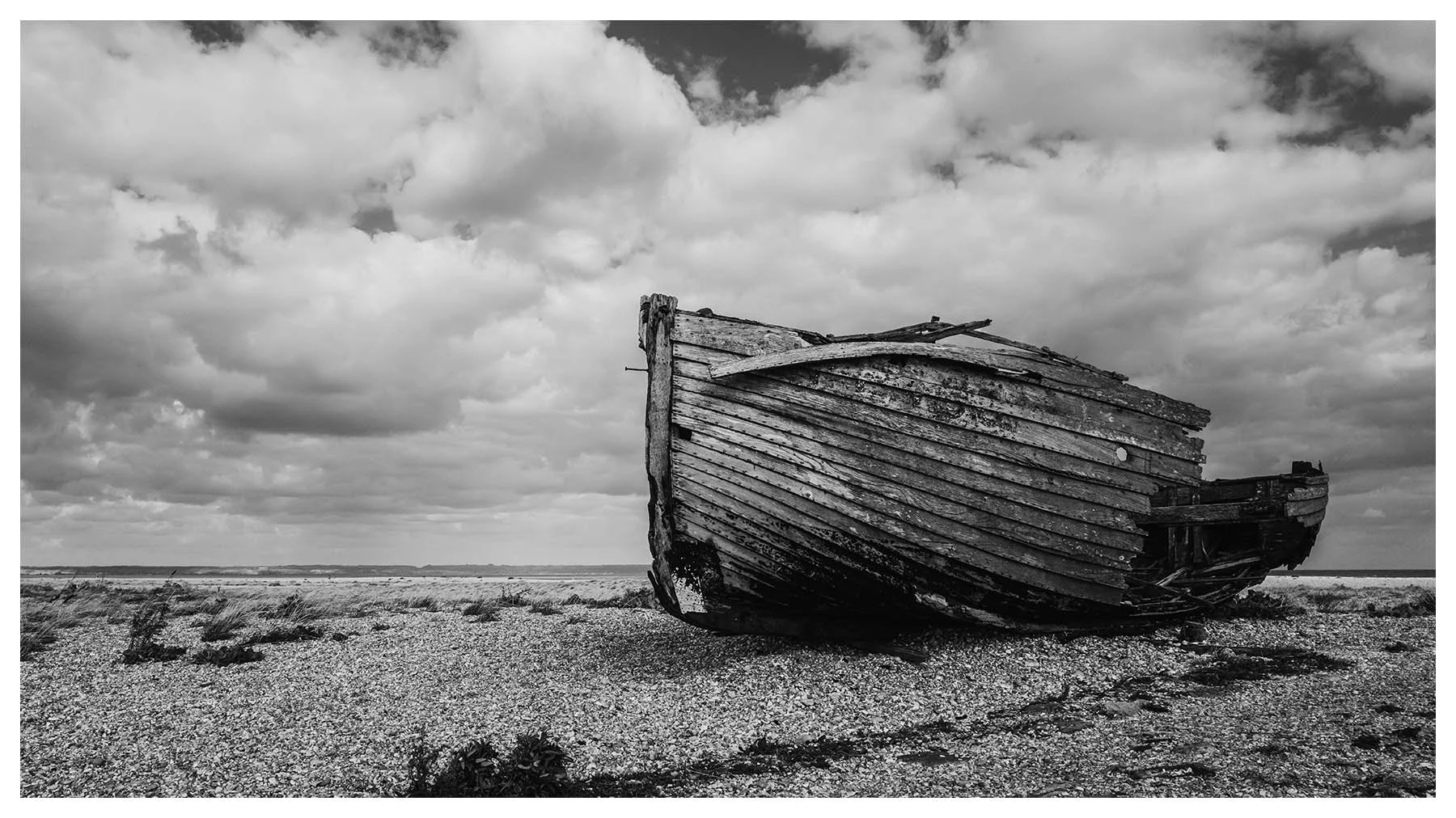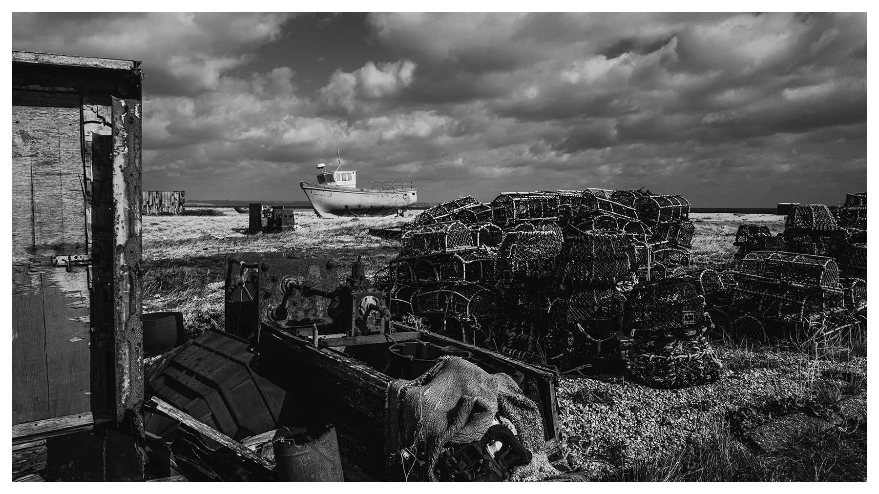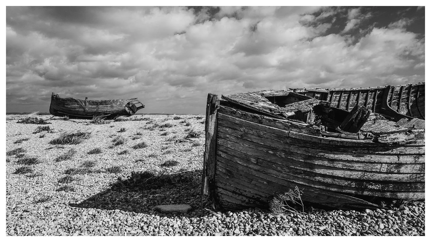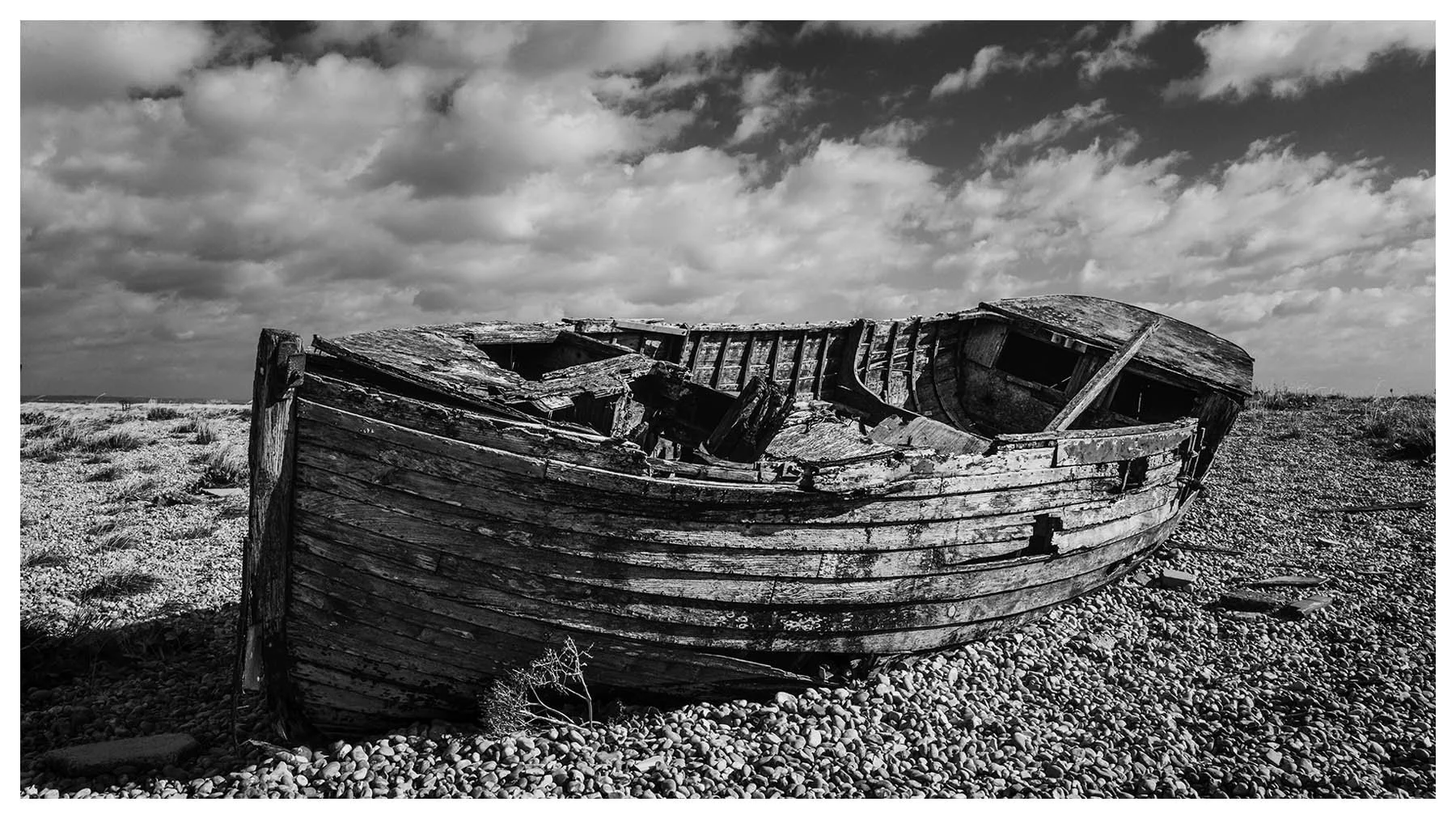Dungeness Beach is a place where the landscape feels suspended between beauty and desolation. It’s a vast shingle expanse, scattered with abandoned boats, weather-beaten huts, and rusted machinery. The flat horizon and the haunting stillness, has a melancholy about it, every texture rich with history. I wanted to document the boats before they vanish forever.
